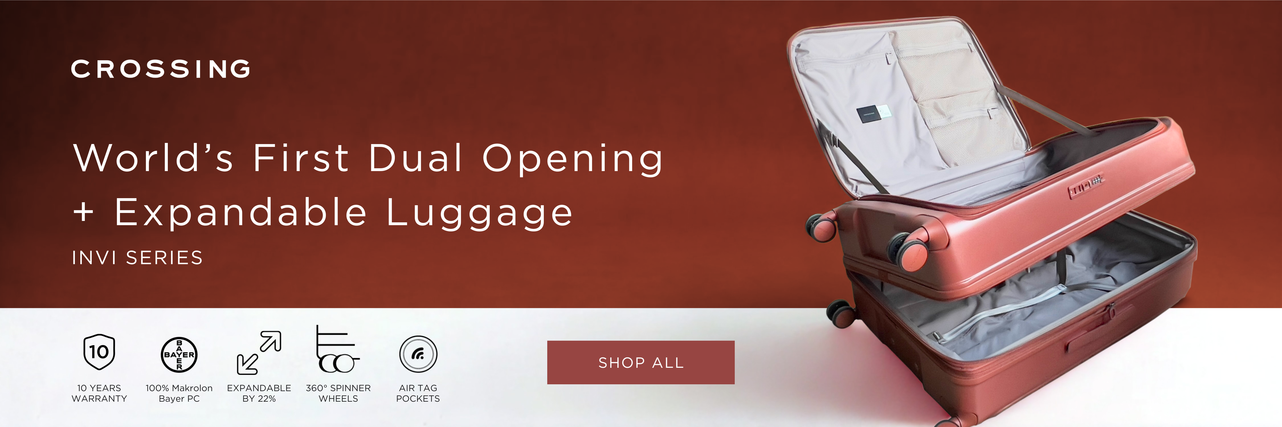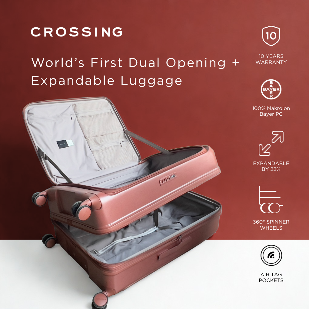 360° 8-wheeled spinners for smooth gliding through airports.